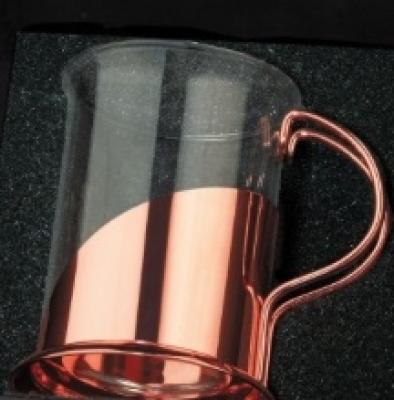1 Taza de café o Te encobrizada con vidrio templado en caja negra.